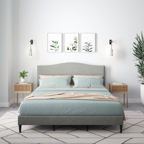 Product Name: Grey upholstered bed with nailhead trim online