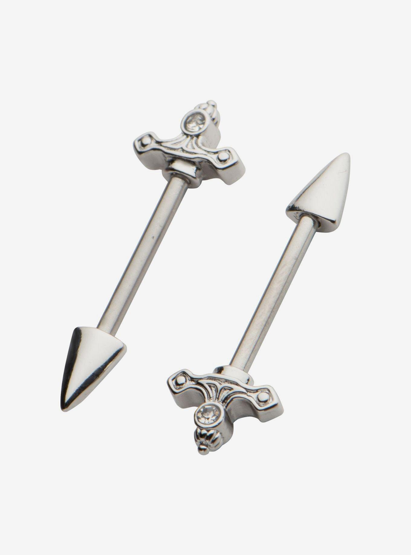 14G Steel Heart Sword Nipple Barbell 2 Pack