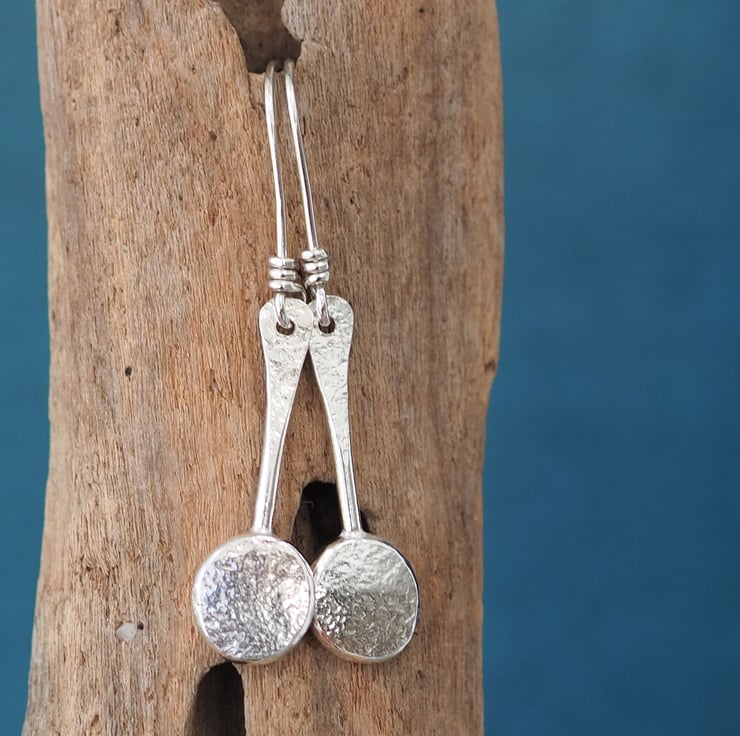 • Sterling Silver Hammered Disc Earrings Argentium Silver Simple